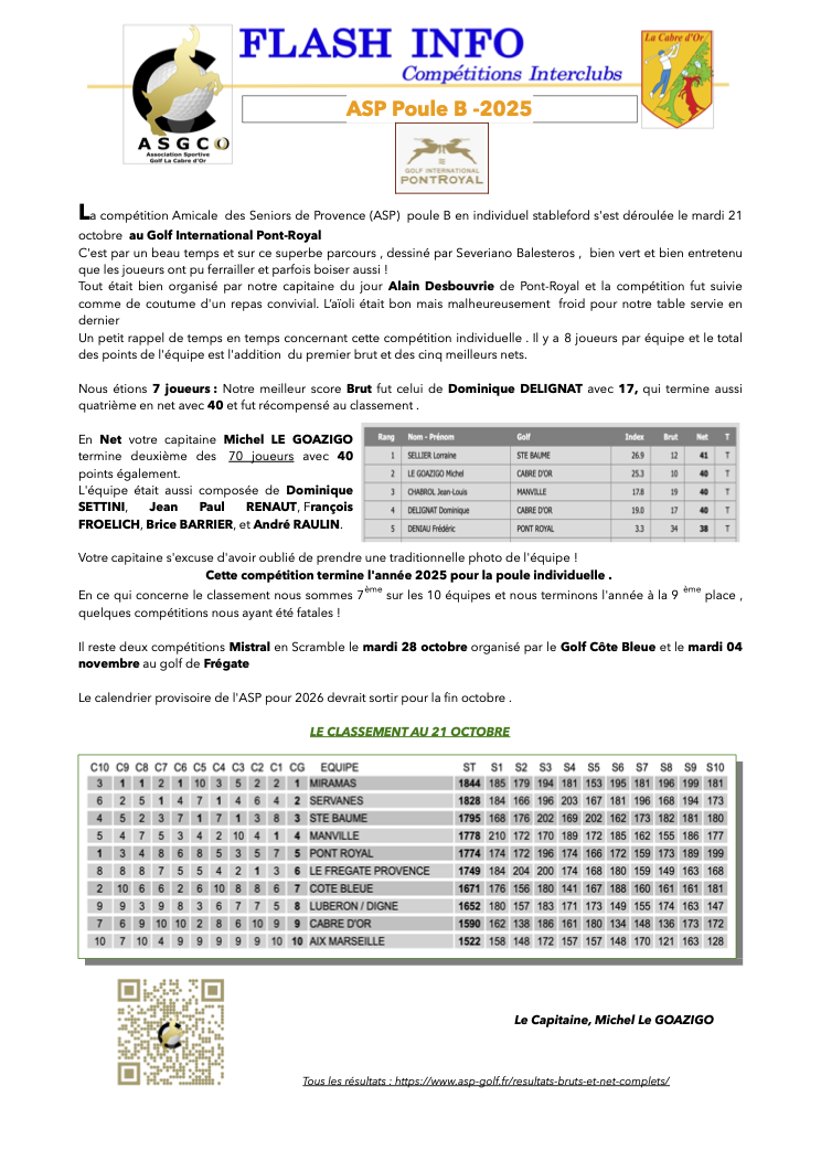 FLASH INFO Interclubs – ASP